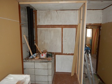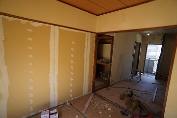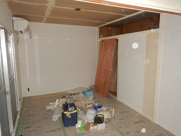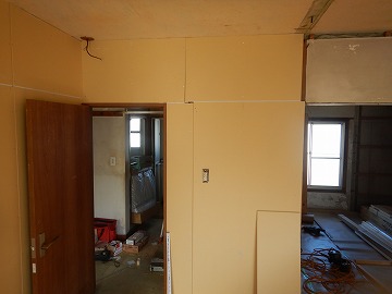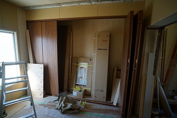 ![]() 建具枠取付・壁ボード張り |