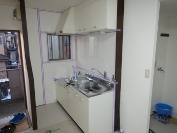 ![]() キッチンパネル張り |