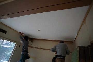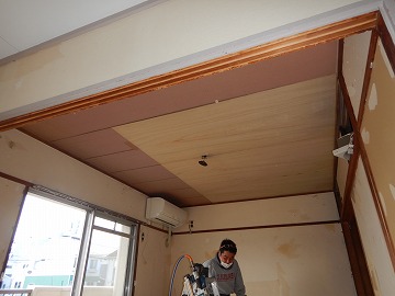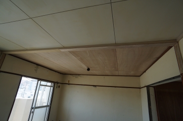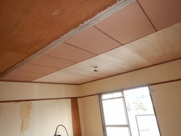 ![]() 天井ベニヤ張り |